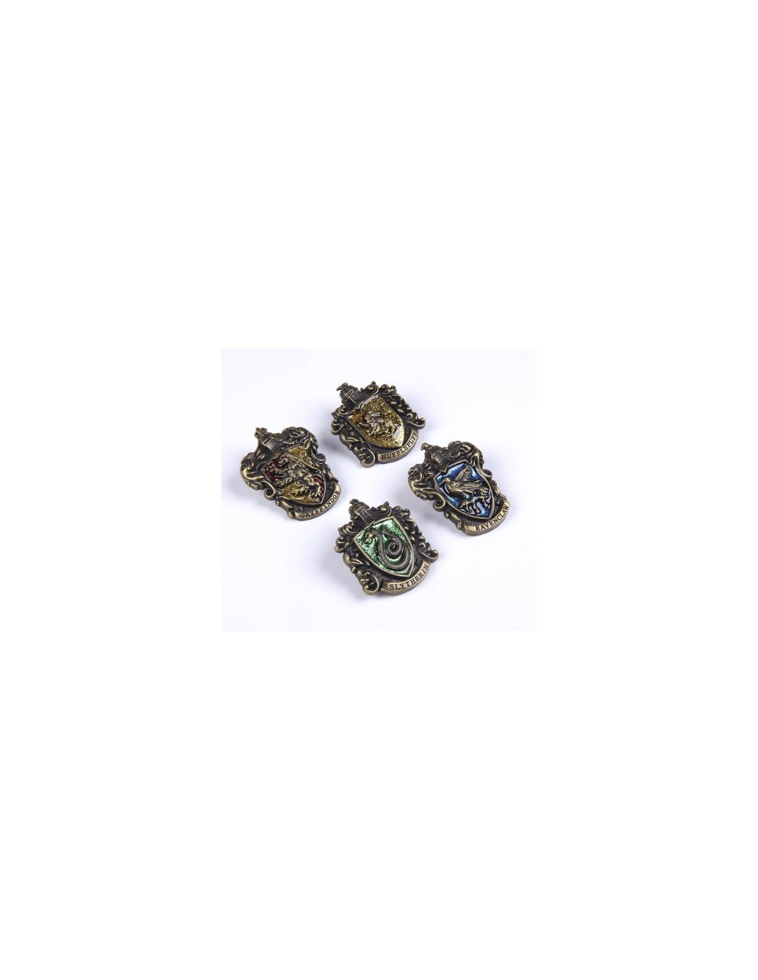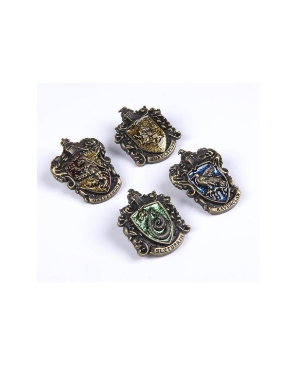 Conjunto de pins metálicos que representan las cuatro casas de Hogwarts: