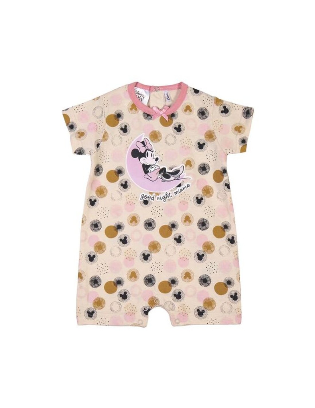 Este pelele presenta un diseño dulce y alegre inspirado en Minnie Mouse, con su icónico lazo y detalles encantadores. Es perfecto para que tu pequeña luzca con estilo y comodidad durante los cálidos días de verano.